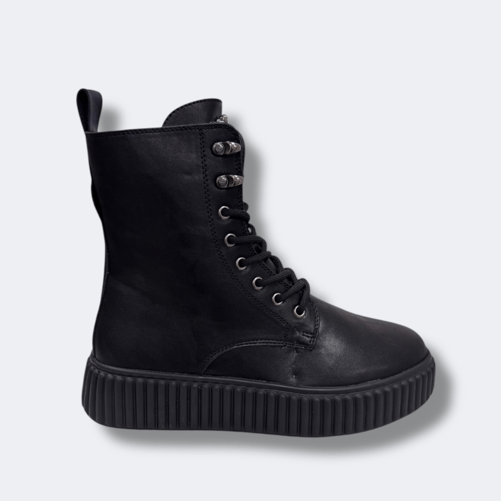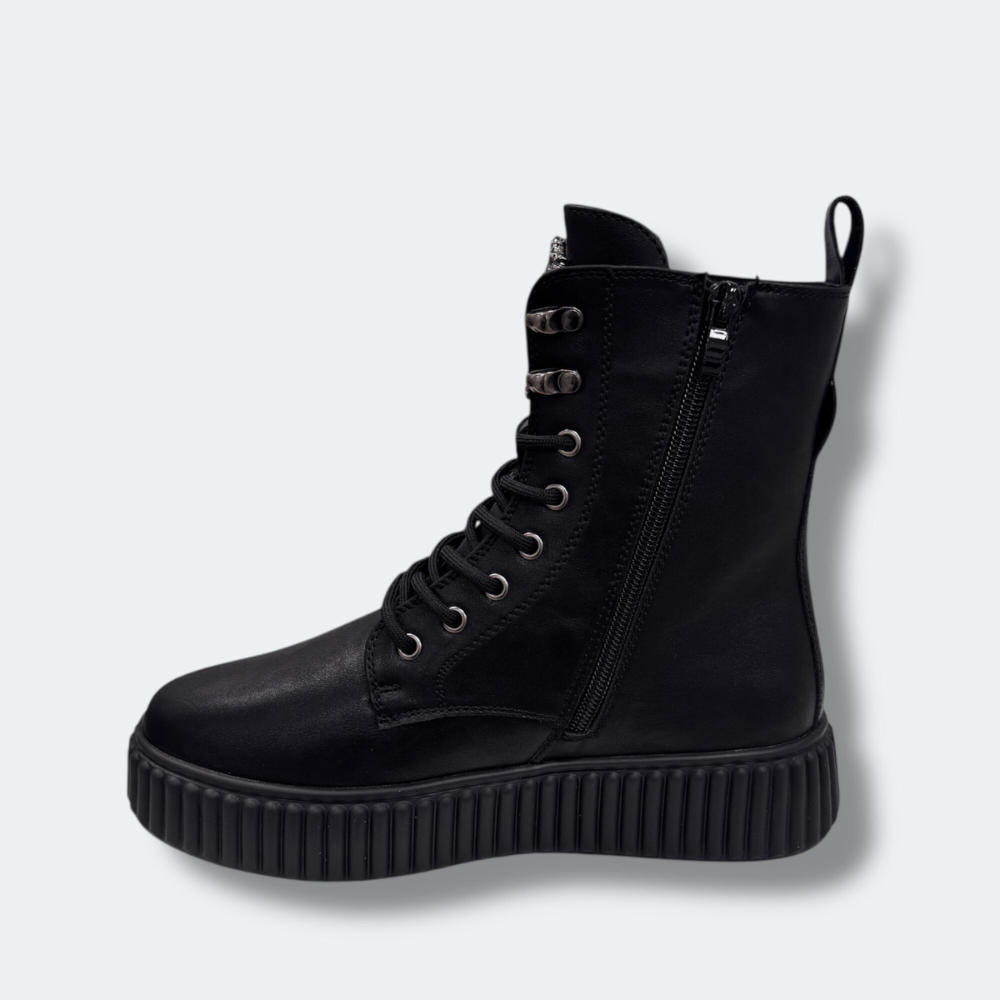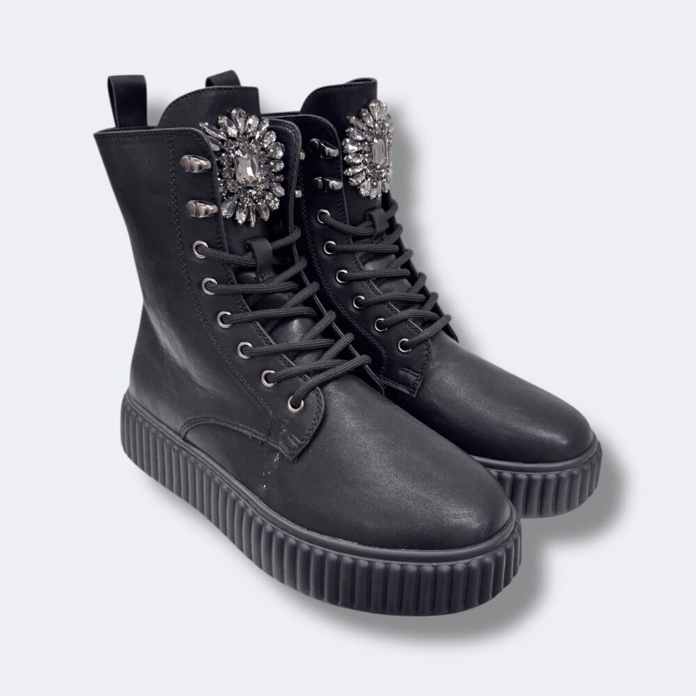 Gli anfibi neri gioiello trendy  è realizzato in morbidissima texture effetto pelle.