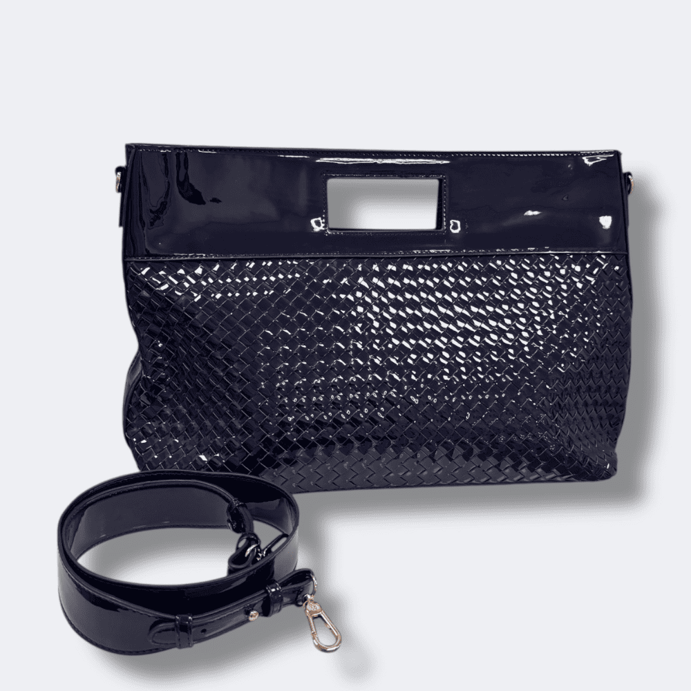 La borsa blu intreccio lucida è realizzata in una combinazione di similpelle lucida e finitura intrecciata, offre un raffinato gioco di texture che la rende versatile per diverse occasioni.