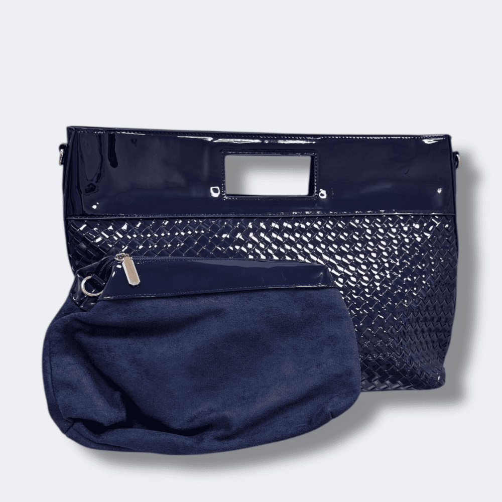 Borsa Blu Intreccio Lucida