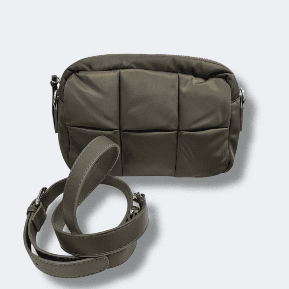 La borsa verde trapuntata imbottita dispone di tracolla regolabile. Il colore neutro la rende facilmente abbinabile a look casual o urbani, diventando un accessorio versatile e di tendenza .