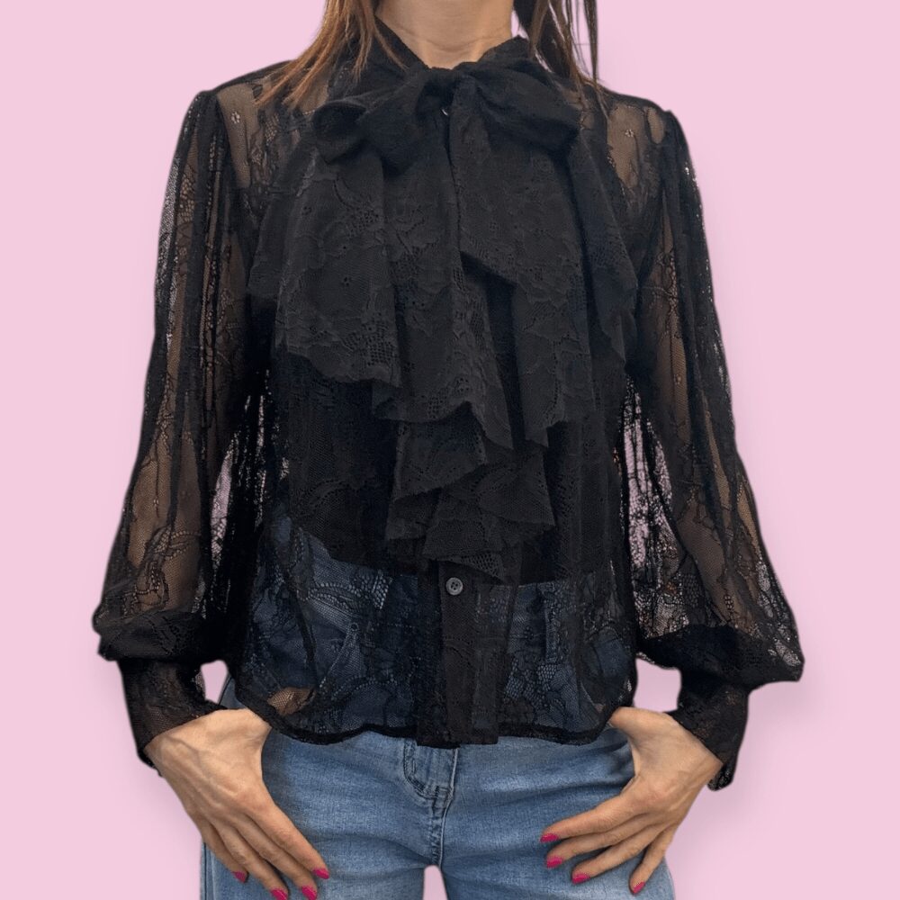 La camicia nera pizzo è realizzata al 90% nylon e il 10% in elastan.