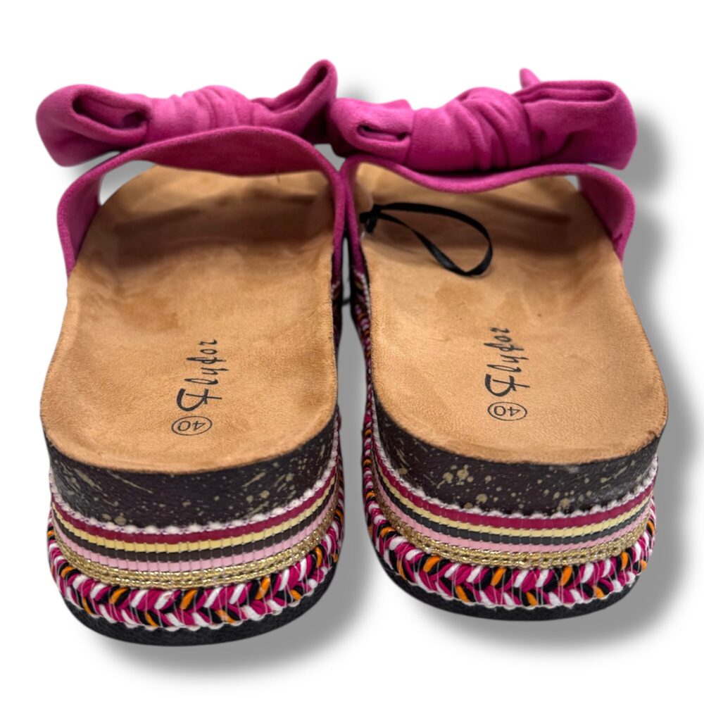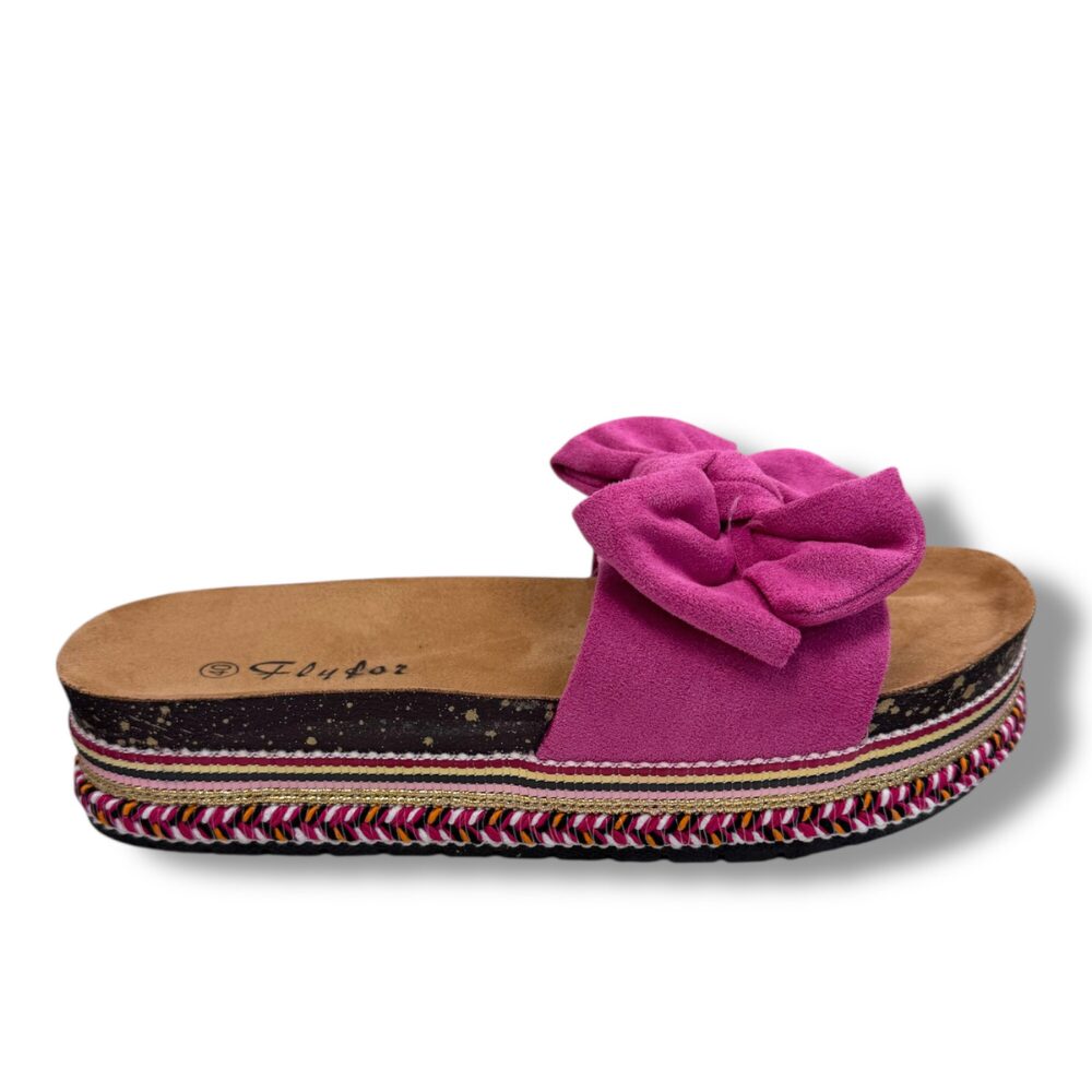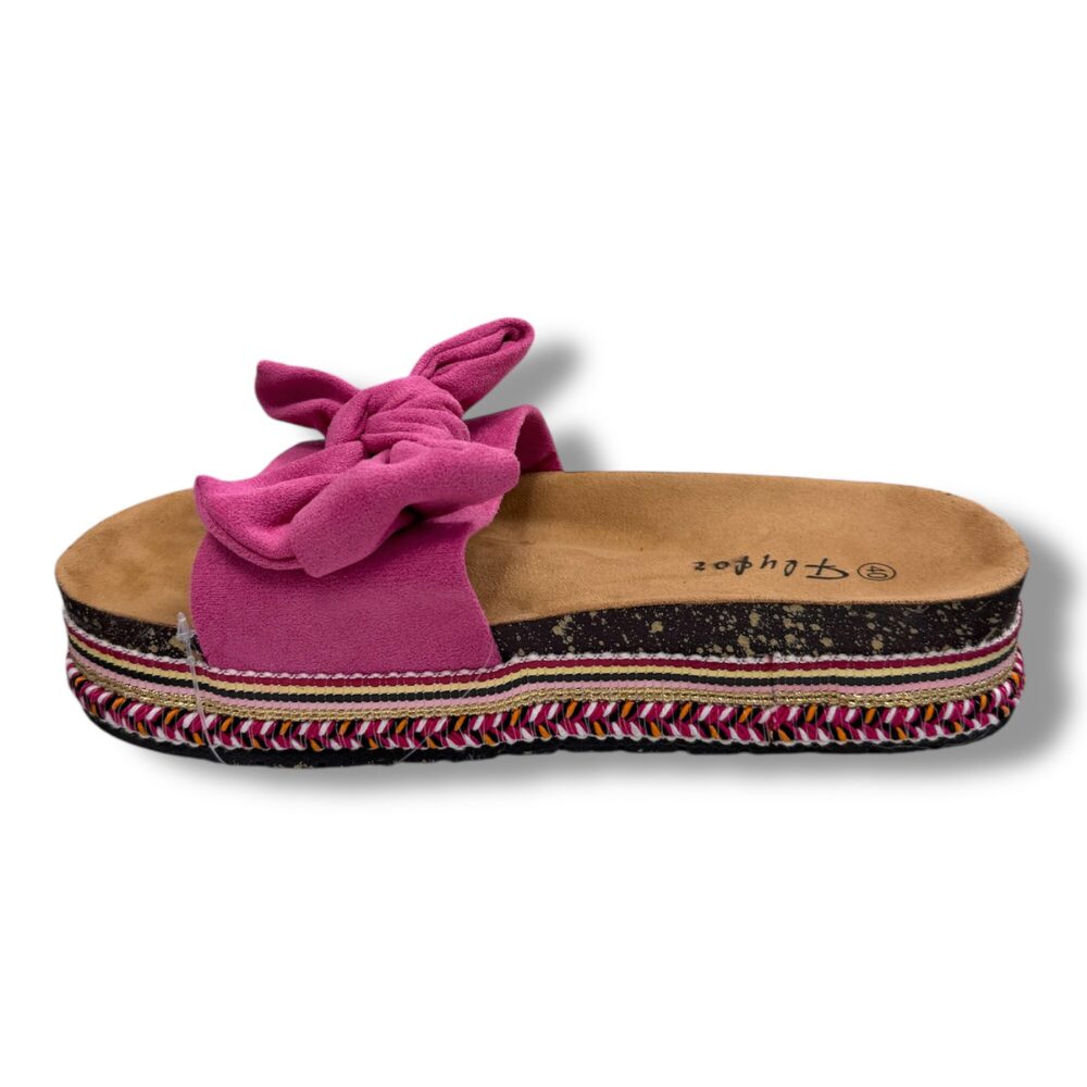La ciabatta fucsia fiocco è realizzata in morbida ecopelle.