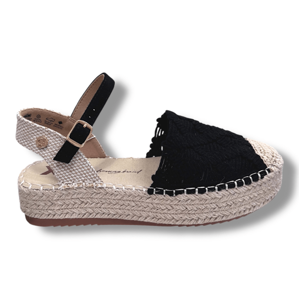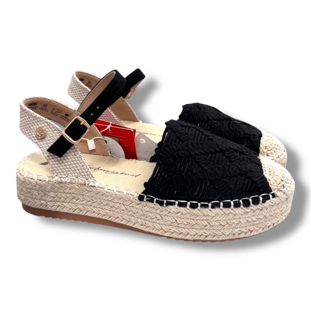 Il modello è caratterizzato da soletta in memory foam, arricchito da tessuto lavorato in macramè e da cinturino regolabile.
