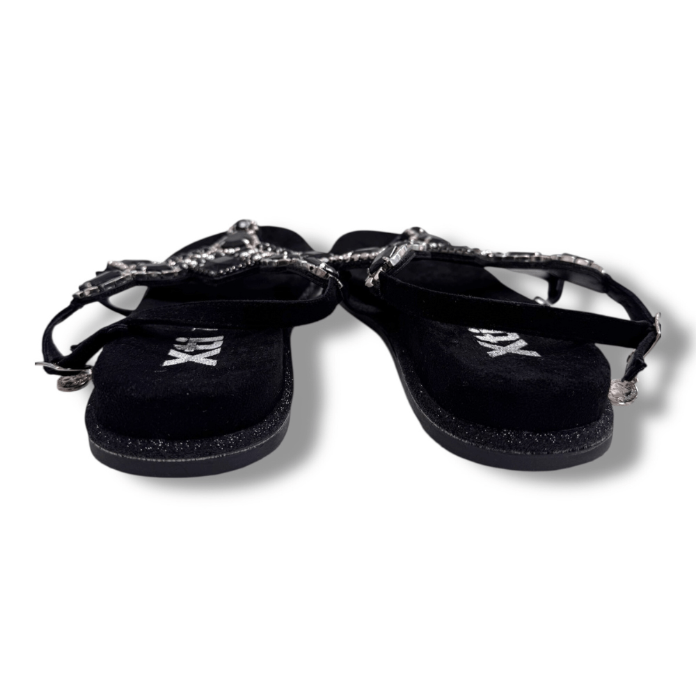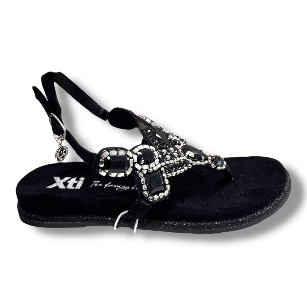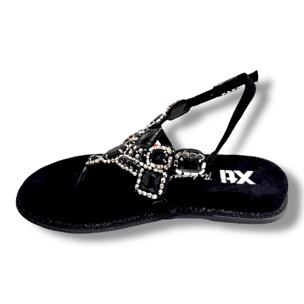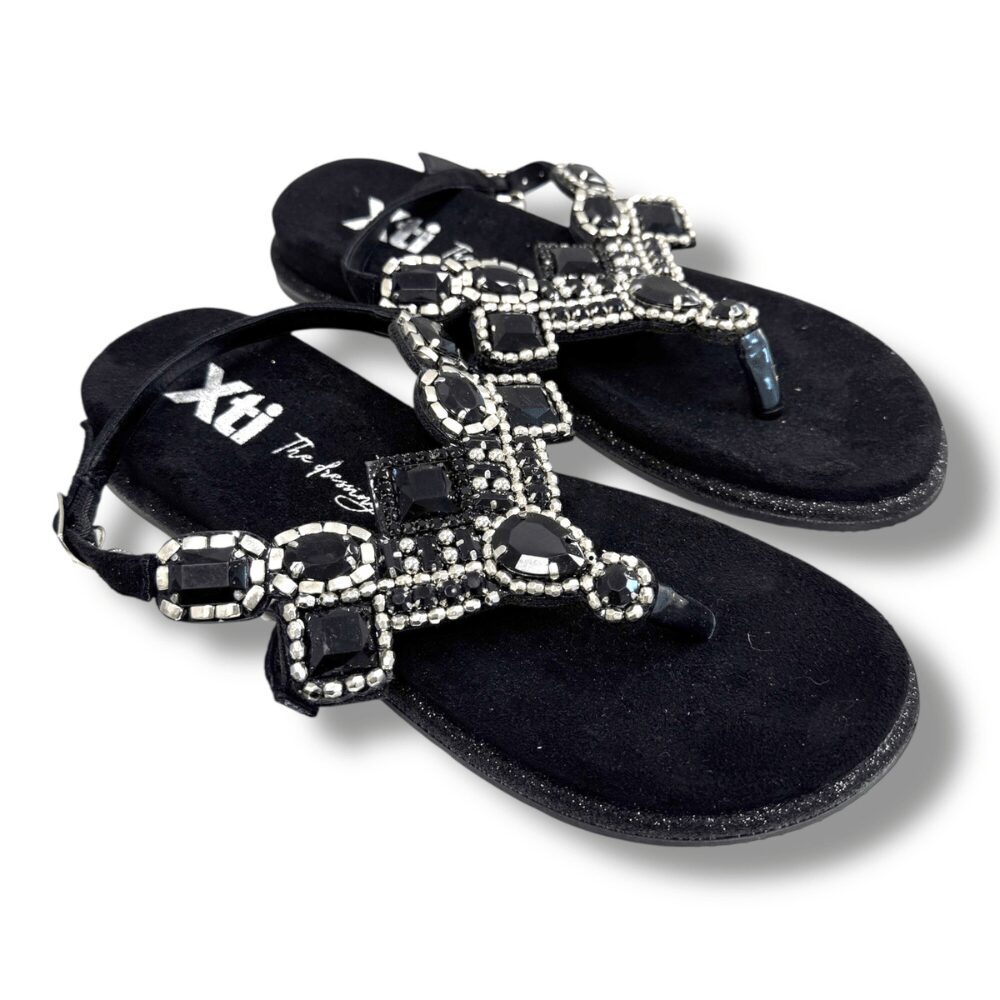L’infradito nero gioiello è realizzato in morbida similpelle.