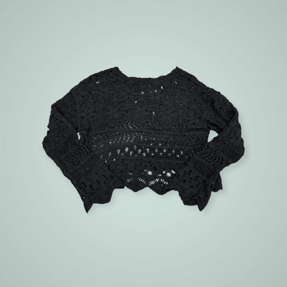La maglia uncinetto nera è realizzata al 100% in cotone.