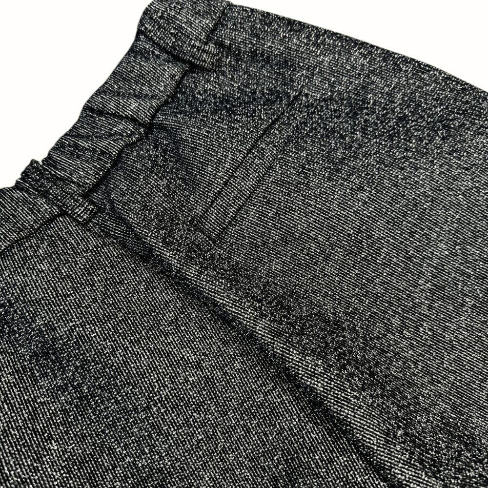 Il pantalone largo melange è realizzato al 97% cotone e 3% metallo.