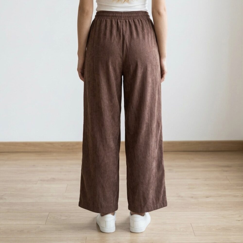 Il modello è caratterizzato da materiale morbido e fluido, presenta una vita elasticizzata che assicura una vestibilità comoda e adattabile a diverse silhouette. Il design semplice e lineare la rende estremamente versatile, perfetta da abbinare sia a t-shirt e sneakers per un look quotidiano casual, sia a camicette e accessori eleganti per un’uscita più raffinata.