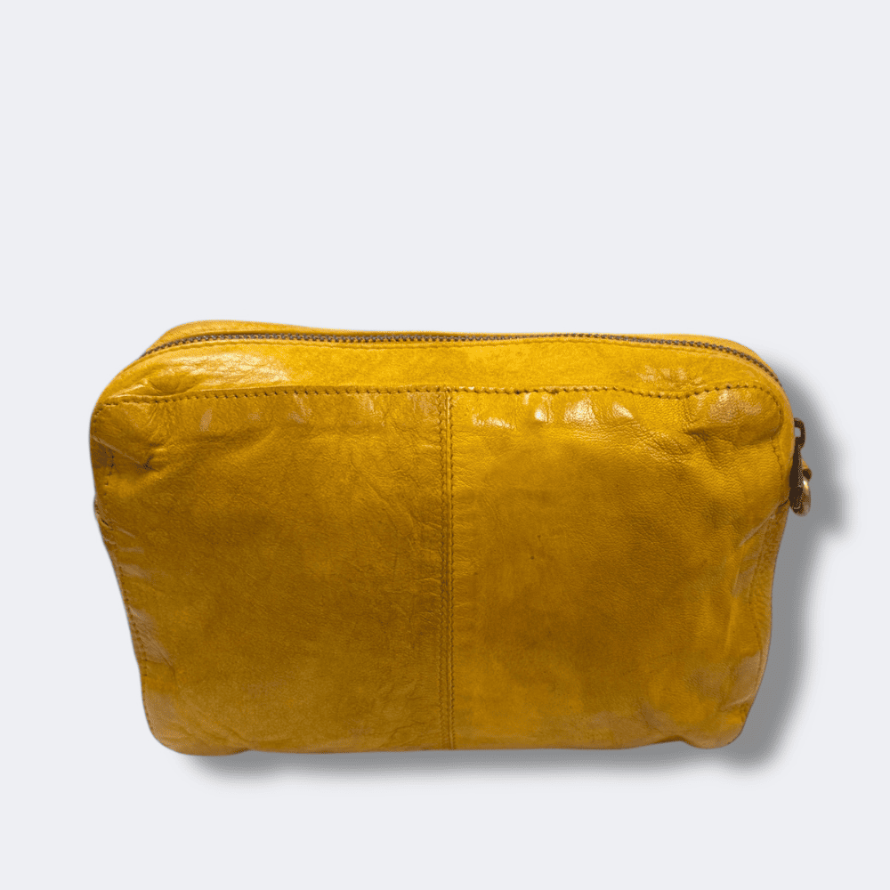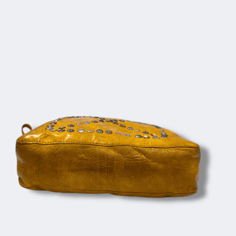La pochette gialla borchie geometriche  è realizzata in morbidissima vera pelle.