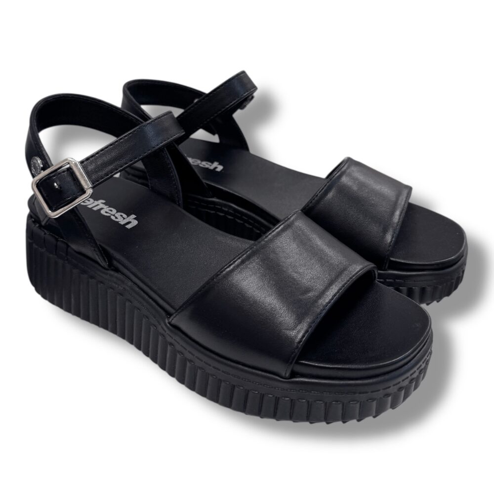 Il sandalo nero para zigrinata è realizzato in morbidissima texture effetto pelle.