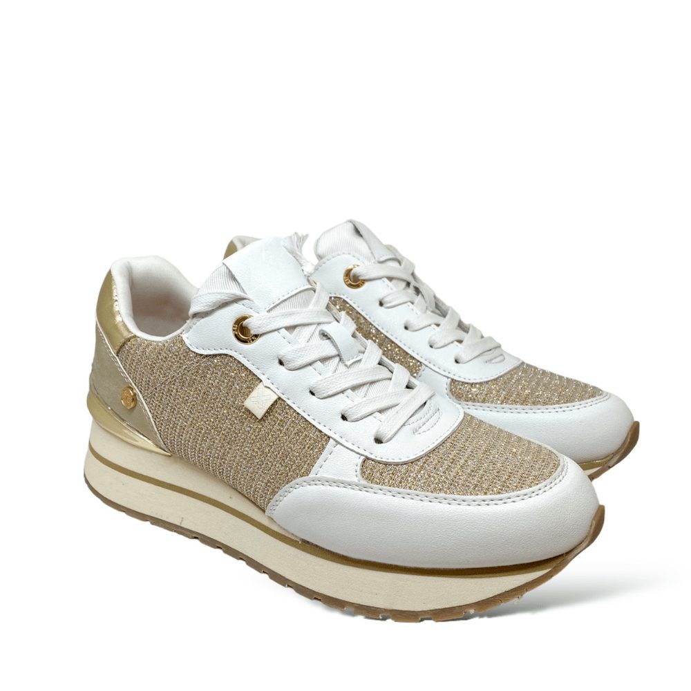 Le sneakers xti glitter oro sono realizzate in morbida texture effetto pelle e da tessuto glitterato.
