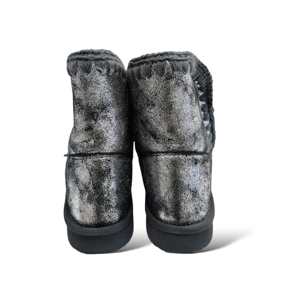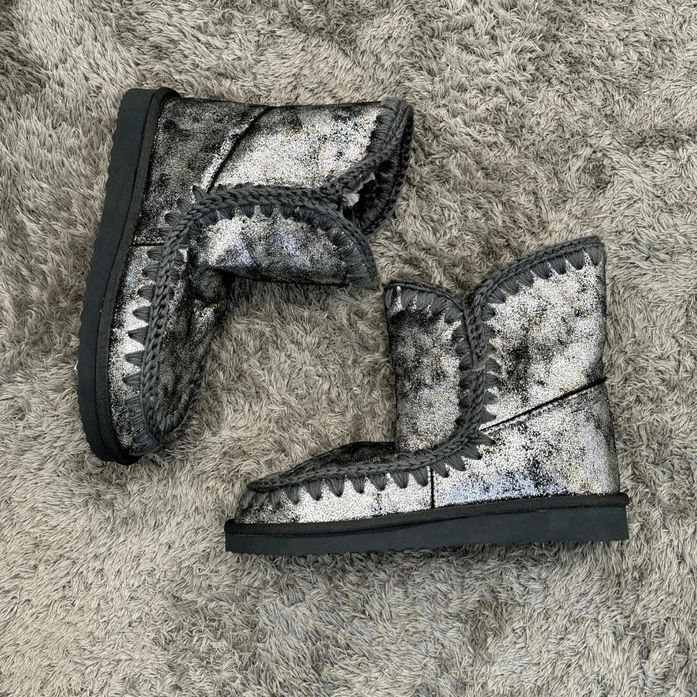 Il modello è caratterizzato da punta tonda e da cuciture all’uncinetto prodotte a mano.Interno in pelliccia e fondo in gomma.