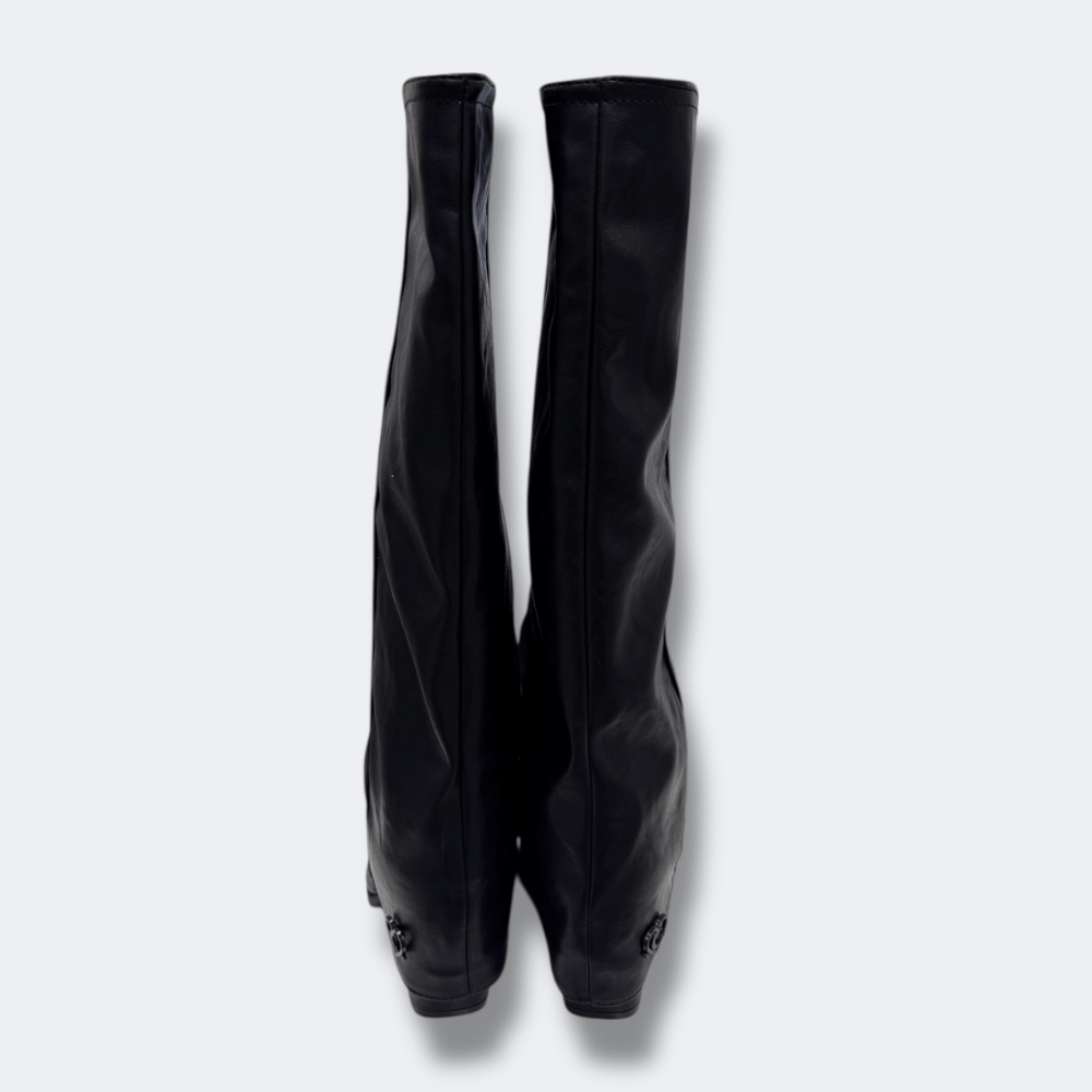 Gli stivali a ghetta neri sono realizzati in PU morbida texture effetto pelle.
