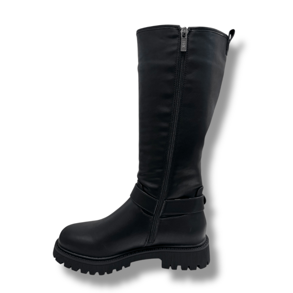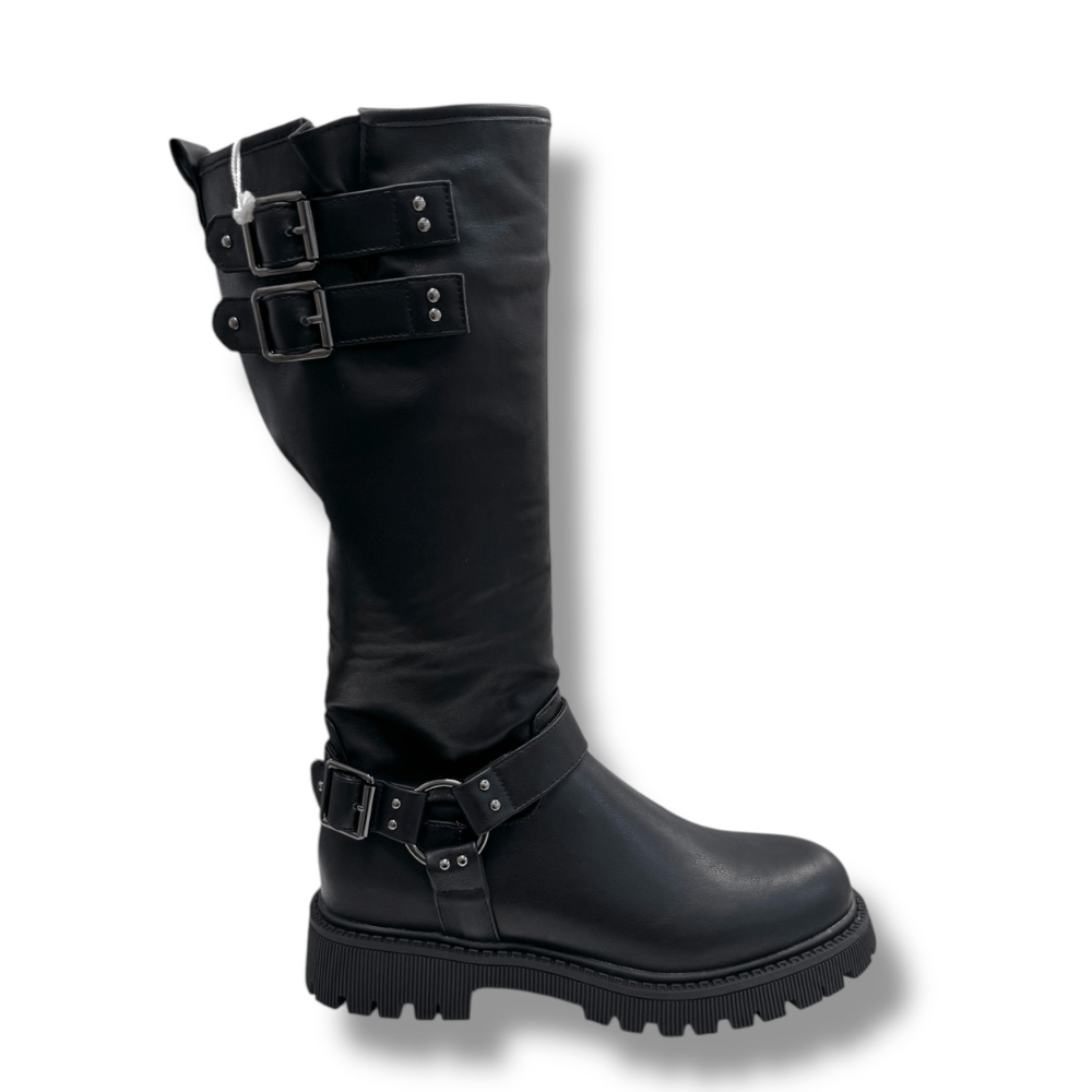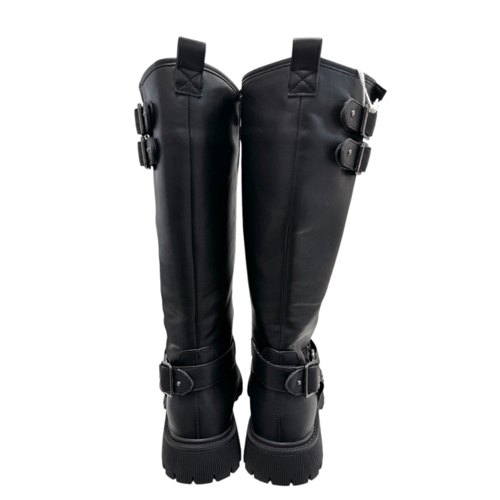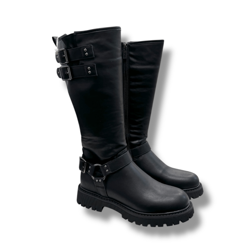 Gli stivali biker fibbie sono realizzati in morbida texture effetto pelle.
