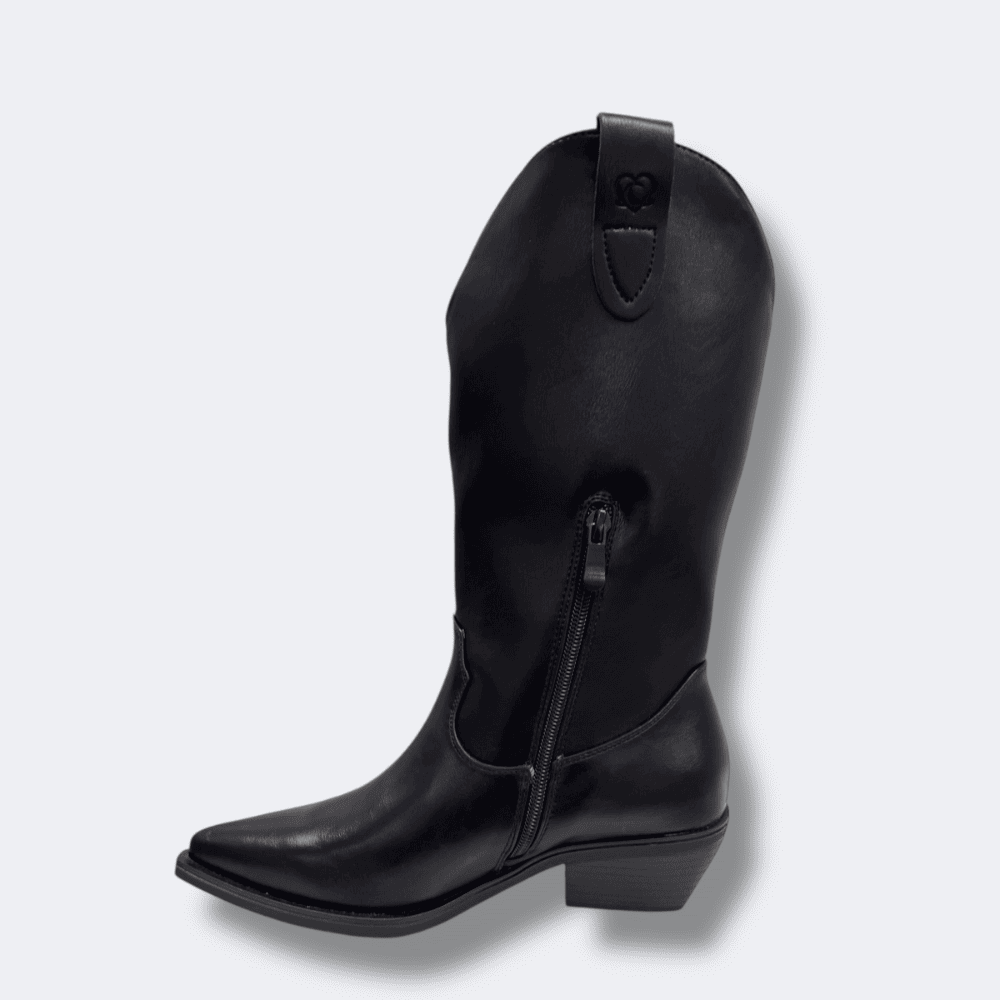 Gli stivali texani neri ricamati sono dotati di linguette laterali per una calzata facile e chiusura con mezza zip nella parte interna.