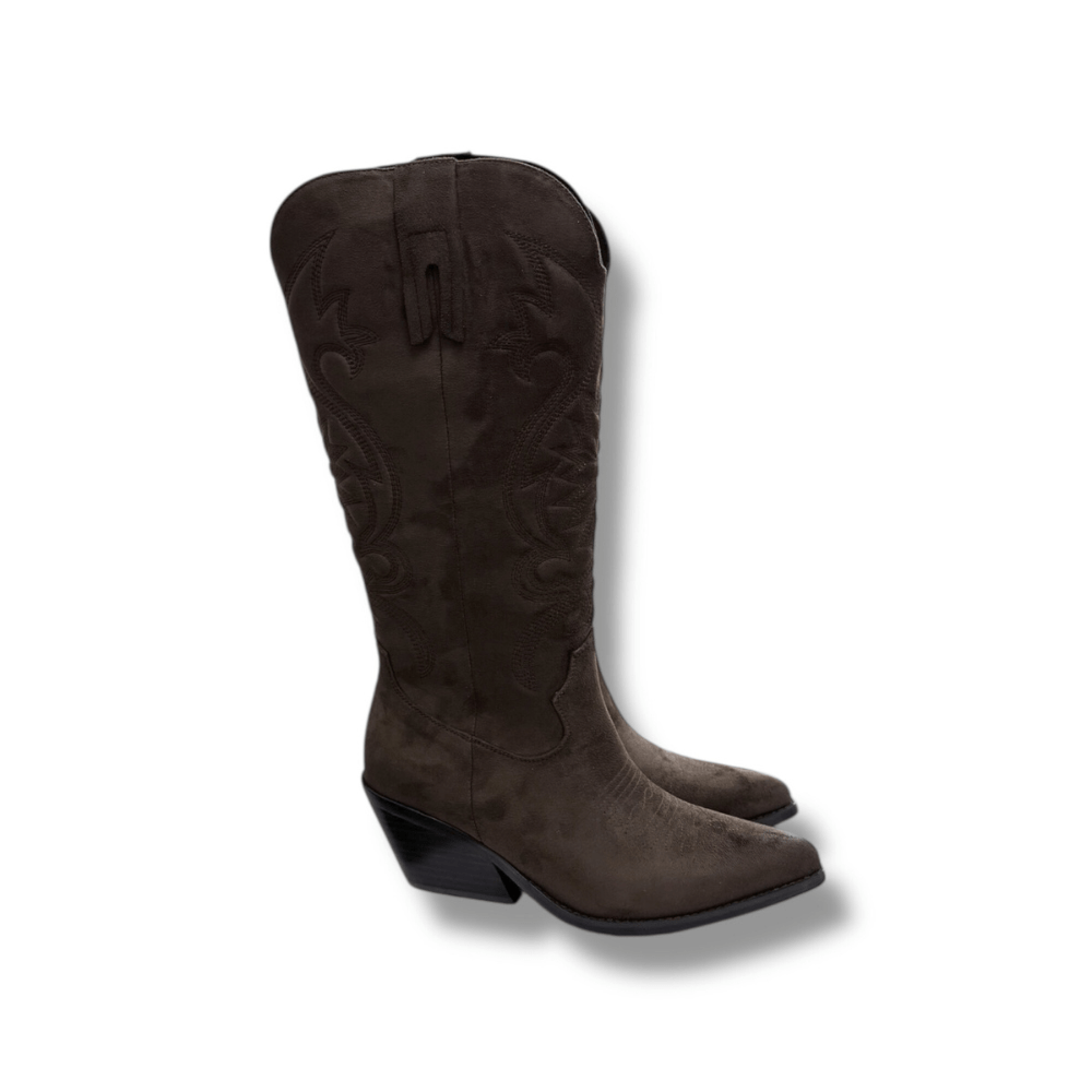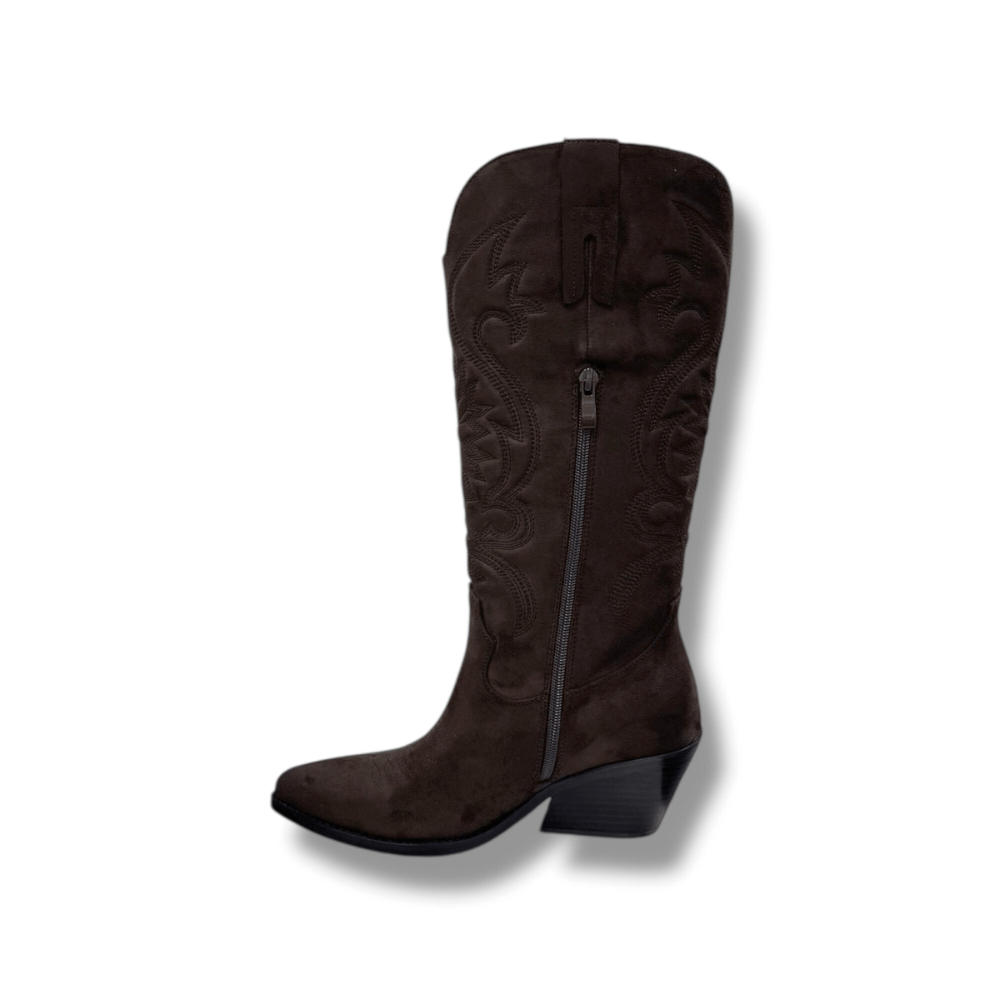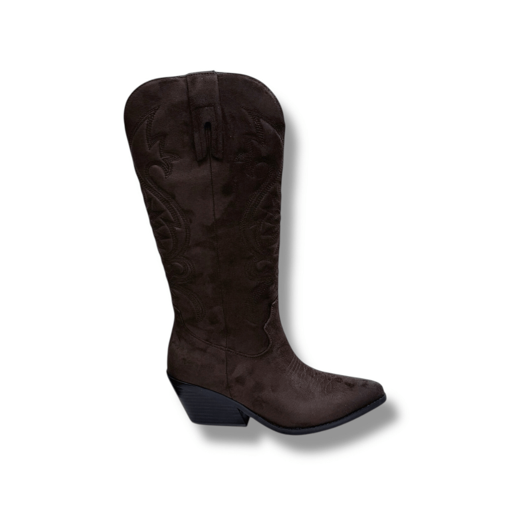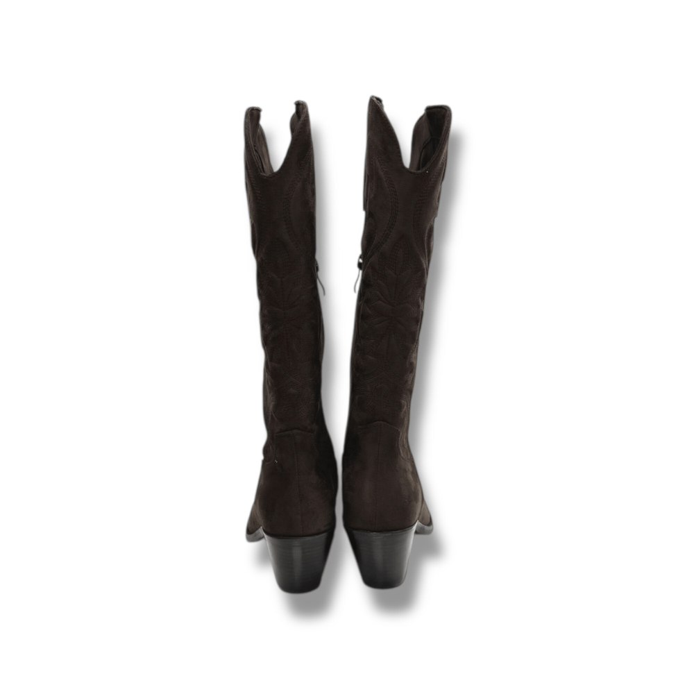 Il texano caffè cuciture è realizzato in morbida texture effetto camoscio.