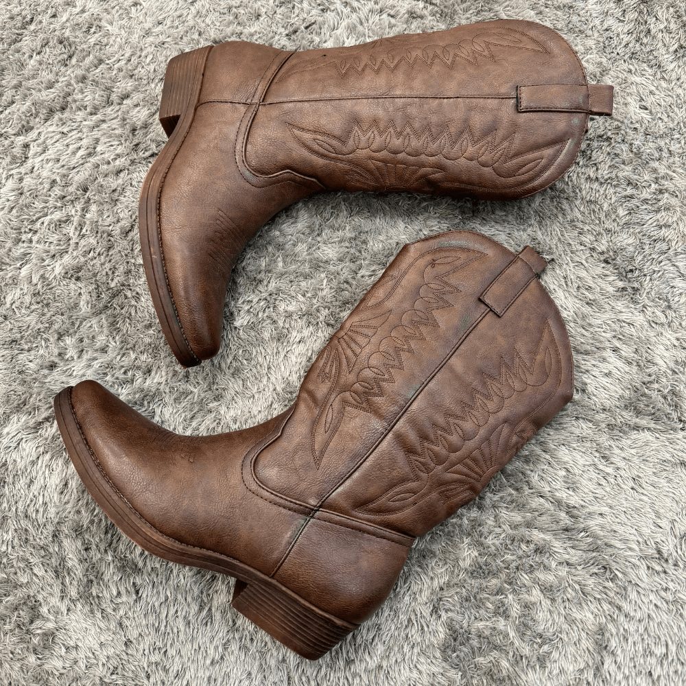 Il texano marrone per donna è realizzato in morbida texture effetto pelle.
