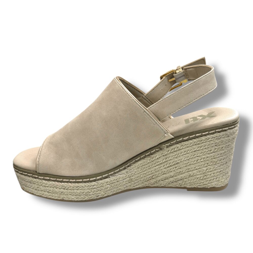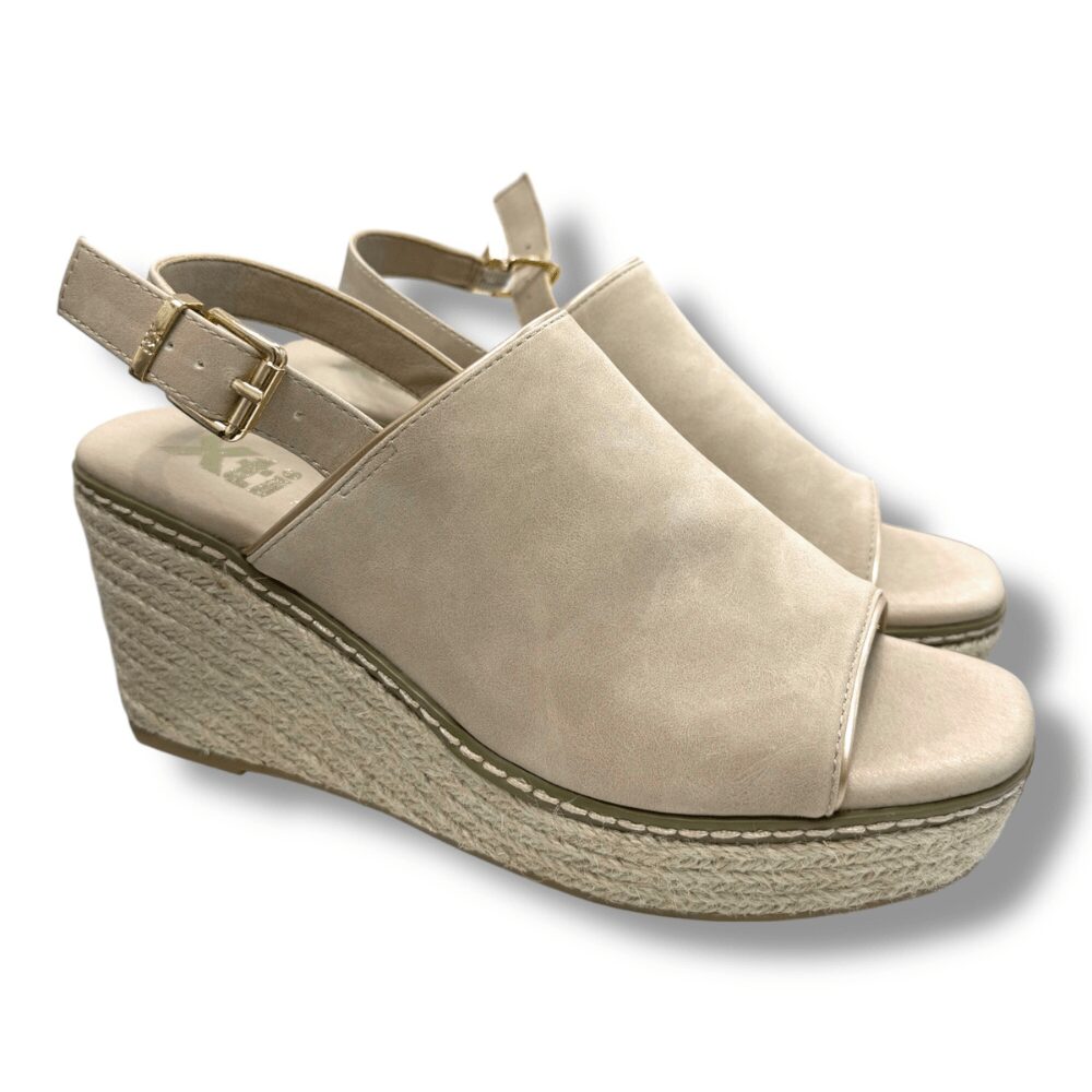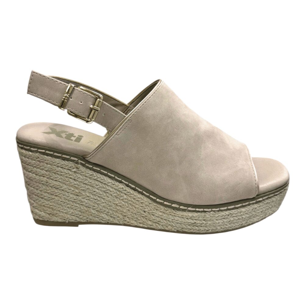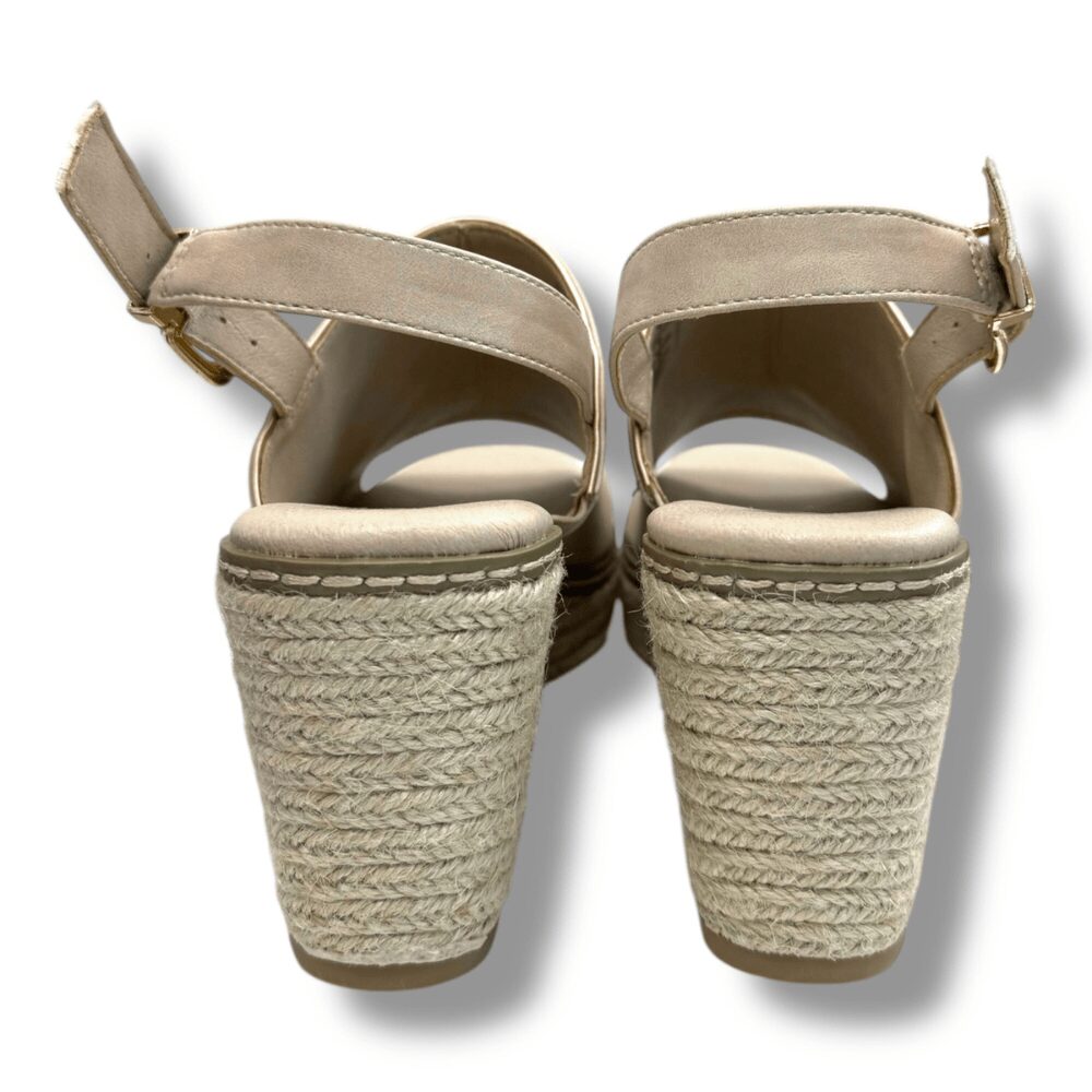 La zeppa beige corda è realizzata in morbidissima texture effetto pelle.