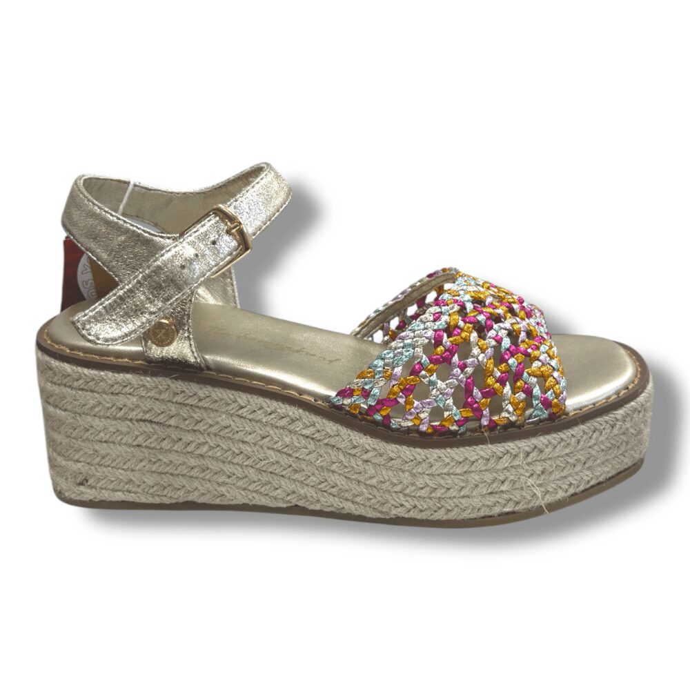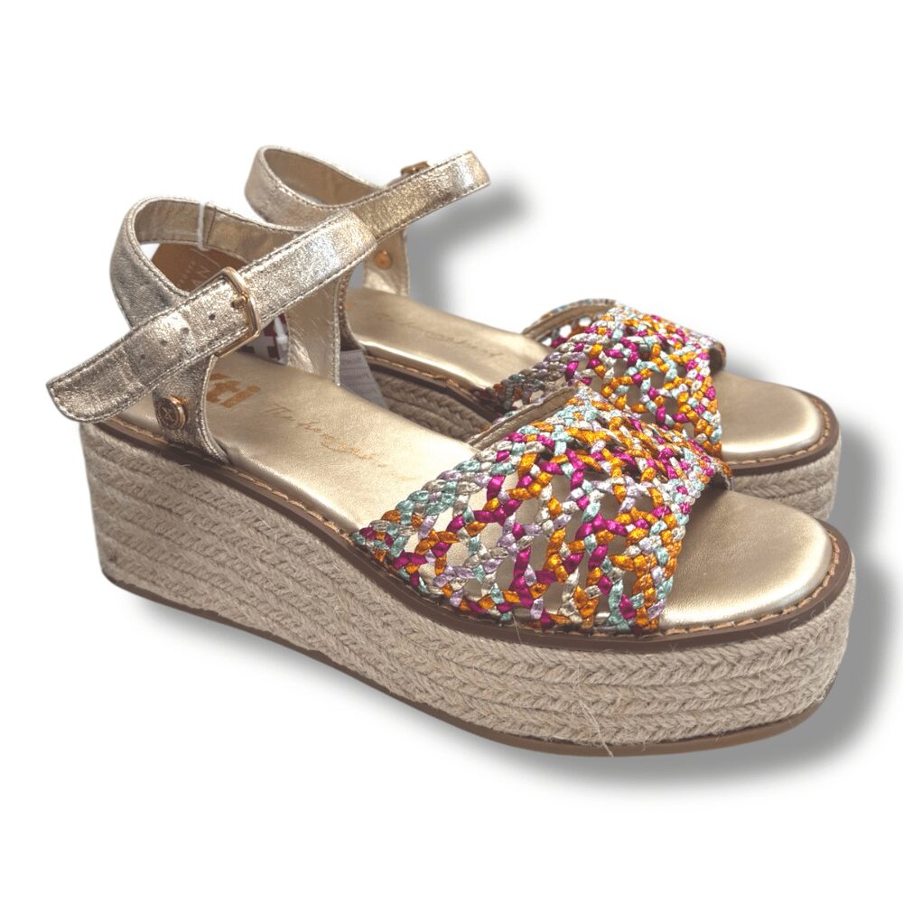 La zeppa intreccio colorato  è realizzata in similpelle.